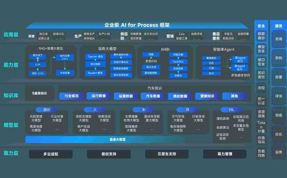 端到端的一站式AI工作空间深度融合了从企业战略规划到日常经营的全流程业务板块,,,,定向解决车企内部领域多、、部门多、、、、链条长、、、场景碎片化等难题,,,,支持车企快速构建以AI为核心的生产力写作体系,,,实现任务执行与AI能力的无缝集成与交互